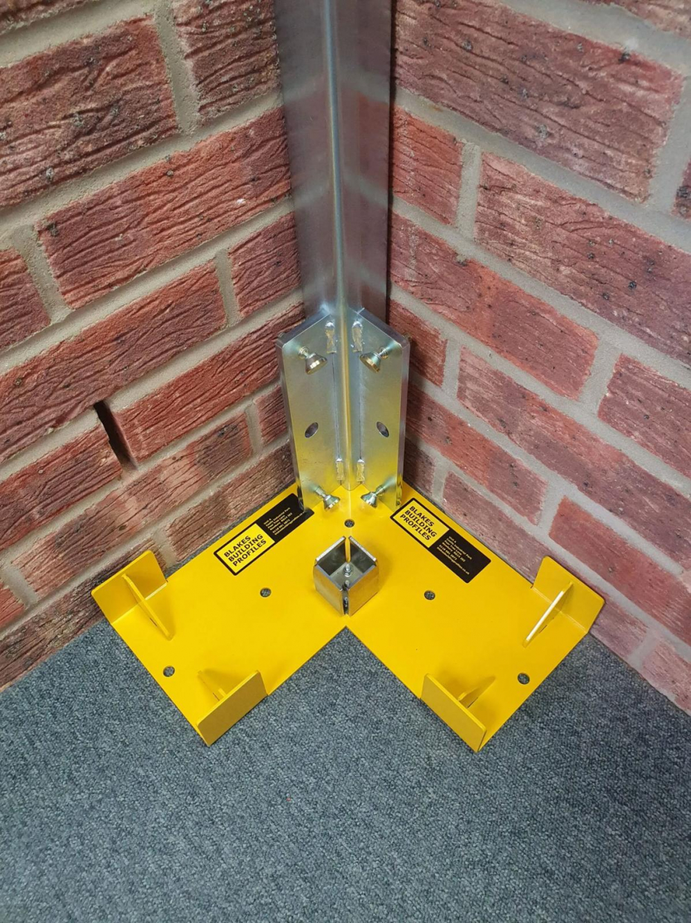 Designed to allow a Blakes External Corner Profile to stand on its own, these are available in yellow powder coat and zinc plated.