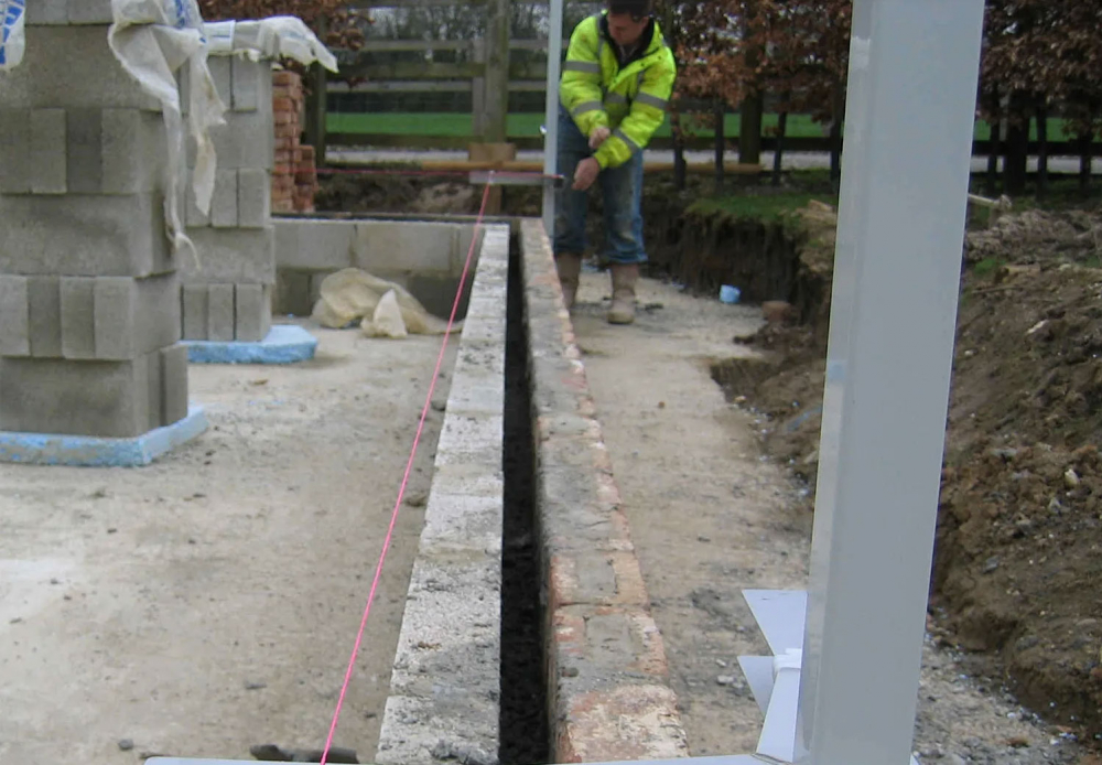 - Both lines are set from the same point which ensures cavity width from Damp Proof Course to Wallplate.